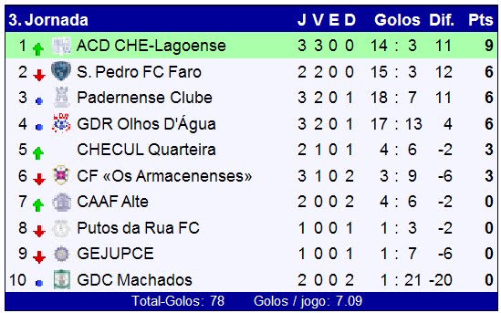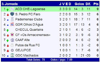 encontra-se no lugar cimeiro da tabela, seguido pela equipa dos Putos da Rua e em terceiro lugar os Machados. A meio da tabela entra-se "Os Armacenense", nos últimos lugares encontram-se o Centro de Alte, Albufeira Futsal e o CHE-Lagoense.